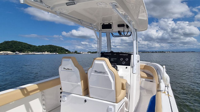 A console central oferece ergonomia e ótima visibilidade, contribuindo para uma navegação confortável e segura. A 255 CC entrega funcionalidade e conforto na medida certa, consolidando-se como um modelo equilibrado dentro da linha Drakkar.