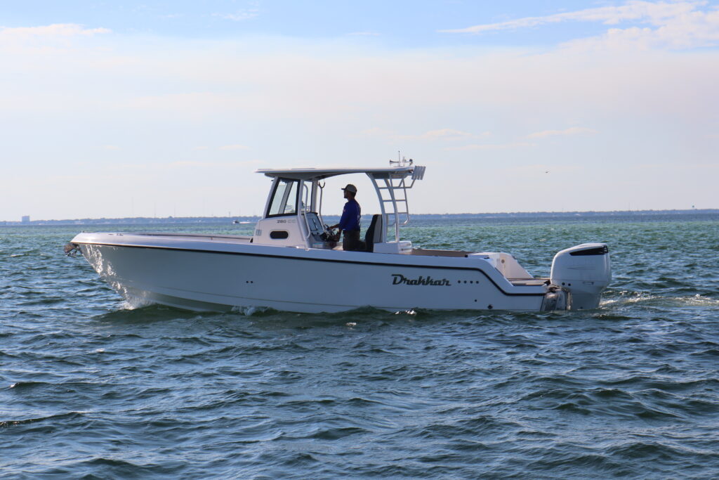 A Drakkar 300CC chama a atenção pelo seu porte imponente e pela sua performance em mar aberto. Com aproximadamente 30 pés, foi projetada para entregar estabilidade, autonomia e alto desempenho em longas jornadas. Sua motorização pode chegar a 600 HP, proporcionando aceleração eficiente, excelente resposta em navegação e segurança mesmo em condições mais exigentes.